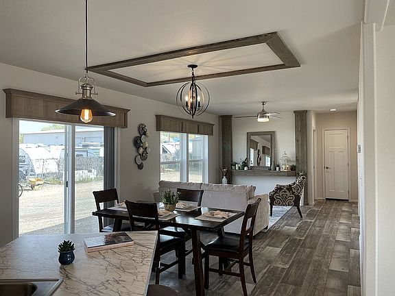 Brand new, move-in ready home located in Boise in a nice, quiet park. 3-bed, 2-bath, 1,500 sqft. Dual living areas, upgrades galore, split floor plan, large kitchen, glamour bath, 8.5" ceilings. Home will have two decks on each side with carports that have already been installed. Home is skirted. Really large lot in a quiet culdesac with plenty of parking. Large yard for animals and activities. Financing available.