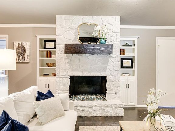 Beautiful Belle Isle restoration hits the mark! The open living area welcomes you in with a beamed vaulted ceiling and rock fireplace flanked by built-in bookshelves. The beautiful kitchen includes a subway backsplash, white cabinets and oversized workstation island. A bright butlers pantry is fitted with skylights and gives added storage space. Unwind in the evenings as you enjoy the amazing covered backyard patio or retire to the master retreat with a large soaking tub and walk in shower. The master closet is the ideal space for your wardrobe needs with custom shelving, drawers and an abundance of hanging rods. Each additional bedroom is spacious and has access to their own renovated bathrooms. Super curb appeal features a circle drive, a stylish color palate inside and out and the perfect amount of low maintenance landscaping. A short drive to any OKC hotspot, this Belle Isle home is a prime location for anyone wanting a quiet neighborhood close to everything the city has to offer.