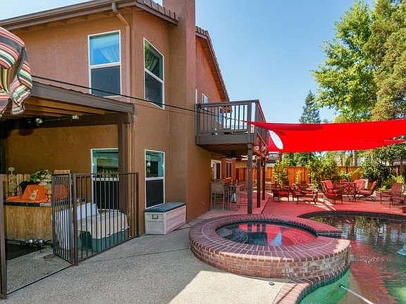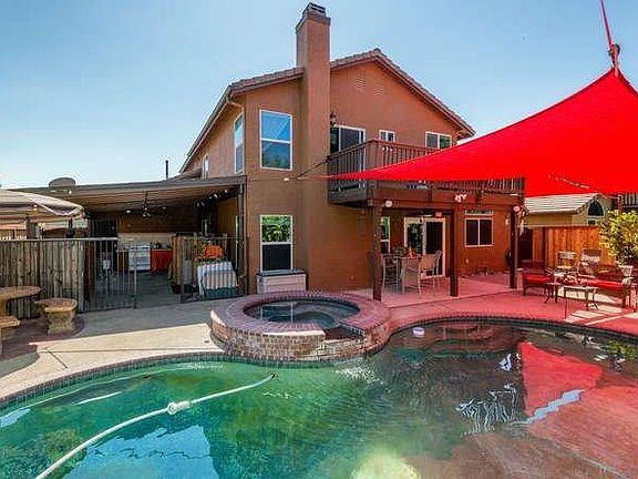 Location, location, excellent location. Clovis community. Unbelievable, too good to be true. Pride of ownership. 4 bd, 3 1/2 baths. Close to award winning Clovis Elementary school, move-in ready. This one won't last. Enjoy the view from the front porch: outstanding landscaped front yard w/ mature sago palms, rose bush's, & solar patio lighting. Low maintenance backyard- brick fenced flower beds w/ beautiful palms, rocks, flowers, & fruit trees. Cemented area great for entertainment- in ground pool/ Jacuzzi, outdoor kitchen & covered patio. 2 new fences, 4 security iron gates for privacy. Ceramic tile floors throughout the downstairs; beautiful matching chandeliers in living/ formal dining rms. Independent bdrm w/ full bthrm access, double sinks/ faucets, granite counter top. Remodeled kitchen- like new- opens to family rm. Custom made ceramic tile stairs. Master bdrm accommodates newer laminated floors. Newly painted interior/ exterior. Don't wait, go and show!