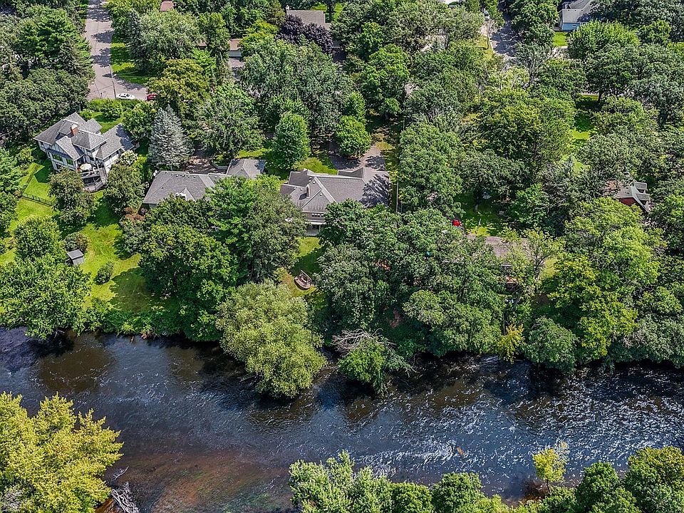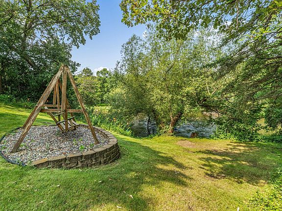 The walkout lower level offers a second family room with fireplace, wet bar, and direct access to a patio overlooking the river. Additional highlights include a skylit entry, epoxy-finished insulated garage, sheet rocked utility room with built-in storage, and an 8x8 cold storage room.