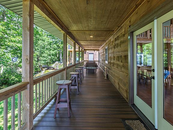 On Top of the World! This 4 bedroom 3 bath log home on 13.97 acres has astounding, high elevation, southern views. Large windows and extensive, low maintenance decking and porches make this the ideal place to enjoy nature. Enjoy sunrise and sunset from the same deck. There are multiple springs and trails throughout the property and the community with almost 300 acres of common area to enjoy. Large, mature timber and gigantic rock outcroppings, Mountain Laurel, Rhododendron and abundant wildlife let you know that you are in a real Appalachian Forest. The extremely well maintained log home features wormy Chestnut custom cabinetry, a large, open great room complete with large, rock fireplace. There is plenty of room for family and guests with 4 bedrooms and 3 baths in main home and a large apartment over the 2 car garage complete with mini kitchen and bath that will sleep several more. This property is located in a private, gated community with underground utilities and paved roads. This community is located in the heart of Grayson County close to the New River, New River Trail, hiking, biking, equestrian trails, trout fishing and more! If you enjoy the outdoors, this is the place to be. Locally this property is a short drive to Galax Virginia, West Jefferson NC and wonderful golf courses. This is an easy drive from the metropolitan areas of Charlotte, Winston-Salem and the Research Triangle area. This home conveys fully furnished.