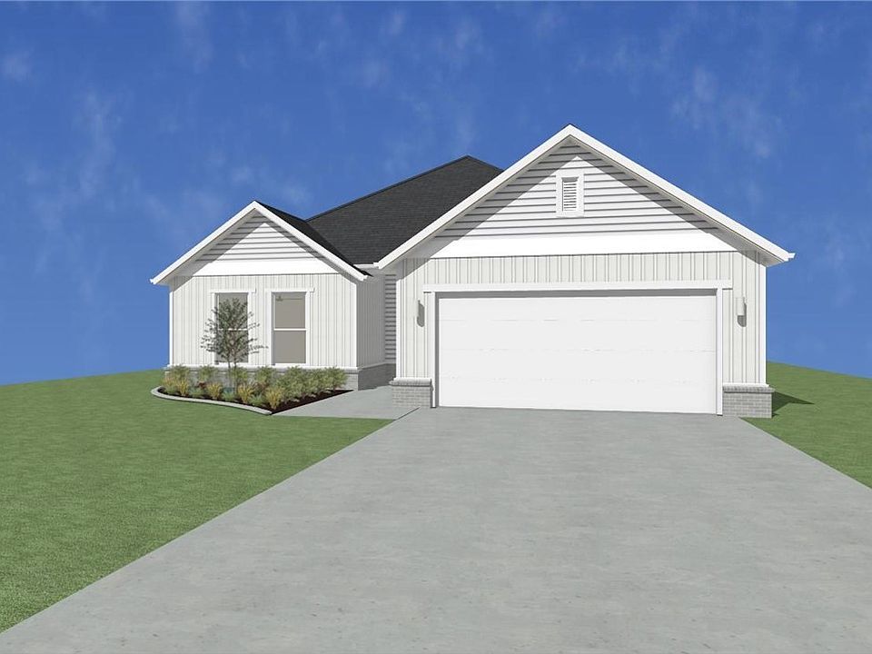 5.49% INTEREST RATE/BUILDER BUY DOWN & fence, blinds and gutters included! Discover your dream home in the new neighborhood- Jacob's Crossing. Fredrick plan with 1 level, garage on the right & North facing! 10 ft ceilings in the living room, linear electric fireplace, LVP flooring throughout the main living areas & primary bedroom, quartz countertops & more. Chef's kitchen boasting frigidaire stainless steel appliances, gas range, pantry, quartz countertops, bar pull handles, large island & gorgeous backsplash. Luxurious primary bedroom features abundant natural light, while the spa-like primary bathroom offers a walk-in shower, double sinks, tub & spacious walk-in closets. Additional features include three large secondary bedrooms and a separate laundry room. Nestled on a generous lot with covered patio that overlooks the serene sodded, fully fenced backyard, creating an exceptional living experience. Sturdy concrete siding & brick! Model home located at 3631 Tranquility St- Lot 1.