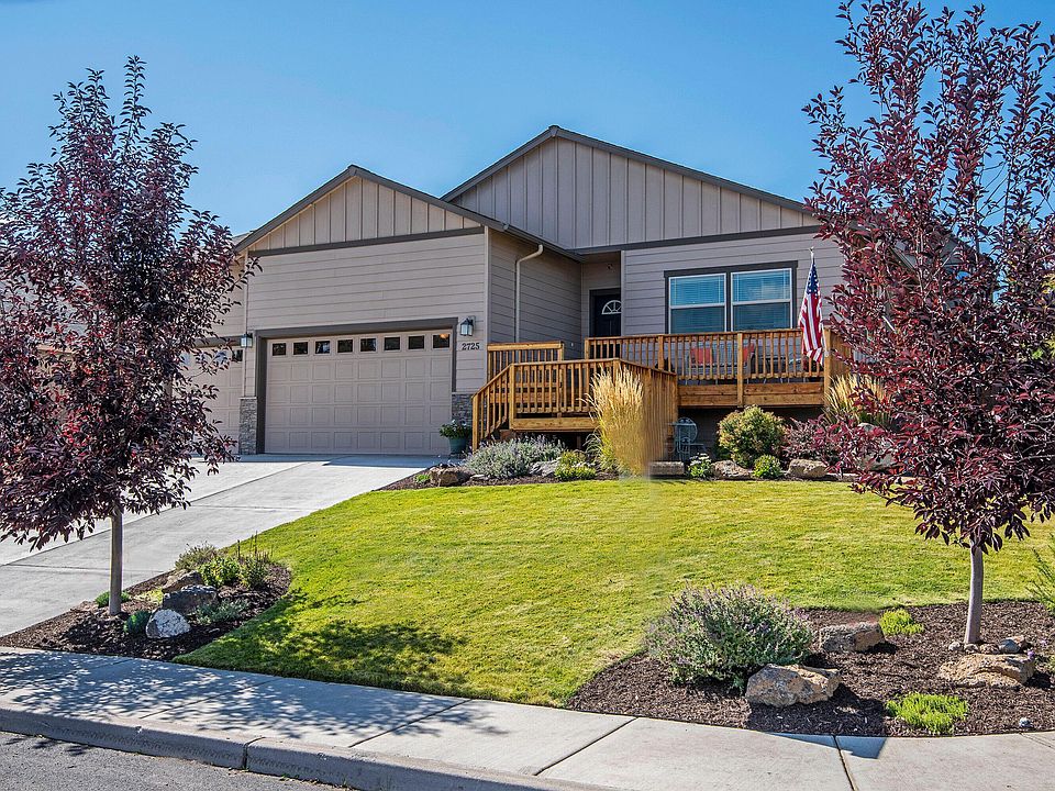 Located in SW Redmond's Kian Canyon with city & Smith Rock views, minutes from Historic downtown Redmond, parks, and trails. Spacious one-level home offers a large great room w/fireplace, vaulted ceiling & formal dining. An outdoor patio, great for entertaining, generous sized primary suite includes a large walk-in closet and en-suite bath, segregation of space from other bedrooms, ideal for guests. Beautiful upgrades, knotty alder cabinets, quartz countertops, stainless appliances. 30-year roof, gas forced air w/high efficiency furnace, Central AC. Coveted and rare triple car garage w/ 16 ft ceilings & extra RV Parking. Corner lot, large yard, landscaped w/auto sprinklers & fully fenced, no HOA's