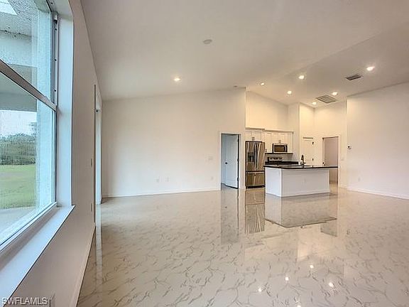 Amazing NEW CONSTRUCTION Rental in NW Cape. Never occupied this 3 Bedroom, Den, 2 Bath, 2 car garage house is ready to call home. Tile resembling marble throughout the entire home, vaulted ceiling in great room, spacious open floor plan for comfortable living. Kitchen features granite counters, open island counter seating for those quick meals, 42" cabinets, pantry and stainless appliances. Laundry room is all set up and ready. The covered open lanai makes outdoor living comfortable. Impact windows so no need to worry about storm shutters here. Rental requires application with minimum requirements of 600 CS, 3x rent for monthly income, income verification, previous landlord verification and references and copy of your driver license. First, last month and security deposit are required. When making your application please include all of your verification, $100 application fee per person and Security Deposit to hold the house.