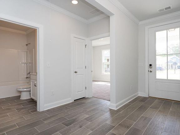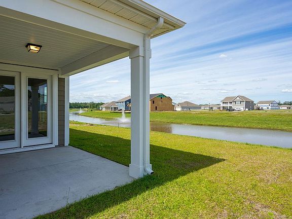 Ready now! Situated on a pond, this is a great open floor plan that has a large foyer for a grand entrance. Spacious kitchen with granite countertops, pendant lights over the island, stainless steel appliances including a gas range, and a large walk- in pantry. The oversized island with breakfast bar is great for cooking and entertaining. The kitchen overlooks the dining room and family room with plenty of room for everyone to gather around. Private owner's suite is in the back of the home. Large master bath with dual vanities separated by a linen closet and a 5' tile shower. Sliding doors off the dining area lead to the 12 x 8 covered porch with a nice view of the pond. All homes include a Smart Home Package so you can stay connected to your home when you're away. Our home owners will enjoy a resort style pool, hot tub, air conditioned pickle ball court, fire pit, walking trails, and a short golf cart ride to the shops and dining in the Market Common area. (Home and community information, including pricing, included features, terms, availability and amenities, are subject to change prior to sale at any time without notice or obligation. Square footages are approximate. Pictures, photographs, colors, features, and sizes are for illustration purposes only and will vary from the homes as built. Equal housing opportunity builder.)