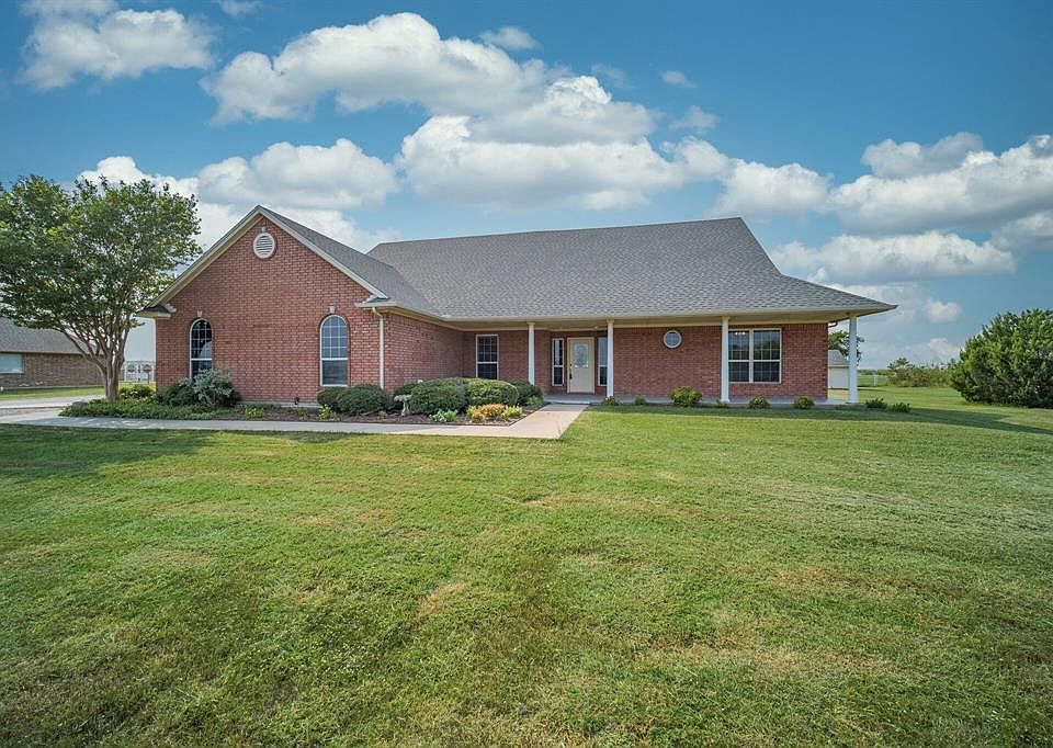 City close, Country quiet, This brick home on 1.22 acres has open floor plan, gas FP and built-ins in living, lots of cabinets and walk-in pantry in kitchen, view of backyard from breakfast nook, split bedroom arrangement, master has dual sinks, closets, and jetted tub, large utility with cabinets, sink, and extra room for freezer, lots of closet space through out, plantation shutters, covered front and back porch, co-op water and 725 ft. deep water well, storage shed well house, 30x50 insulated metal shop with 3 overhead doors, also has airlines and electric in the walls, this property is minutes to Lake Ray Roberts, Ray Roberts Marina, state parks, boat ramps, 20 minutes to Denton, 30 minutes to WinStar!