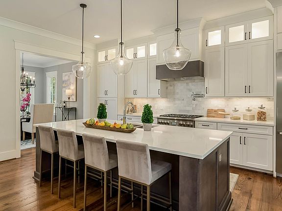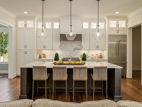 This professionally designed Vestavia home is perfectly placed in the new Forest Creek Community and offers quality fixtures and upgrades throughout. Drenched in natural sunlight from the 2 story foyer windows, the main level offers a formal dining room and an open floor plan with a gourmet kitchen that boasts a large center island with seating, top of the line appliances, and lighted upper cabinets that create an elegant ambiance sure to make this space the heart of the home. The living room features custom built-ins and a sleek tile fireplace. Main Level primary features a luxurious ensuite and connects to a custom walk-in closet and laundry room. Upstairs find 3 spacious bedrooms, 2 bathrooms, sitting area and bonus room, both great for afternoon hangouts or movie nights. Downstairs enjoy a wet bar, additional living/flex space and basement garage. Front and back porches allow you to maximize outdoor living space. Situated on a large fenced lot, just minutes to Vestavia schools.