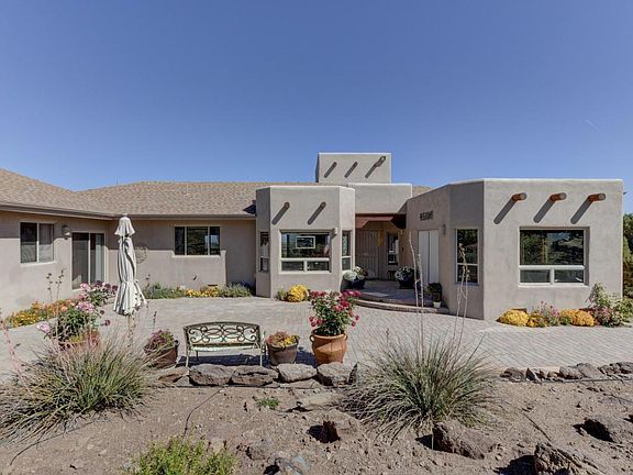 GORGEOUS SANTA FE STYLE HOME WITH PANORAMIC VIEW OF GRANITE MOUNTAIN, WILLIAMS MOUNTAIN, SAN FRANCISCO PEAKS NE OF FLAGSTAFF, MINGUS MOUNTAIN. THIS ONE LEVEL UPDATED SPACIOUS HOME SITS ON 1.58 ACRES. FRESH EXTERIOR PAINT, MODERN PELLA WINDOWS (LIVING AREA), RECENTLY INSTALLED WOOD FLOORING AND CARPET IN BEDROOMS. RECENTLY INSTALLED AC UNIT AND OVEN. THIS GENTLE SLOPE LOT HAS LOW MAINTENANCE YARD AND LAND. ENTER THROUGH ARCHWAY TO A PAVER PATIO. THE OPEN CONCEPT FLOOR PLAN BOASTS PANORAMIC VIEWS FROM MOST ROOMS. LARGE LAUNDRY, AZ ROOM, OVER SIZED 2 CAR GARAGE AND BASEMENT STORAGE / WORKSHOP ACCESSIBLE BY RECENTLY INSTALLED ELEVATOR. CUL-DE-SAC LOCATION. THIS ULTIMATE VIEW HOME IS 2,730 SF WITH OFFICE, 2 BEDROOMS AND 2 1/2 BATHROOMS.