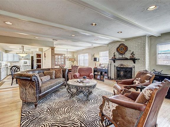 Immaculate home with lovely curb appeal and remodeled kitchen including granite countertops, gas cook top & stainless appliances. Fabulous open plan with beamed ceilings. Den with brick floors and other rooms with beautiful hardwood floors. Updated windows and 2" blinds. Master with bench seat and additional storage underneath plus double closets, beautiful yard for your outdoor living/entertaining with sprinkler system and flagstone walk ways, porch and patio.
