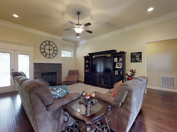 BEAUTIFUL HOME! Like New and move-in ready!All Brick 4Bd/2Ba w/2 car garage!Large open floor plan.Kitchen has granite counter tops, gas stove top, and wall oven. pantry, fireplace, Hardwoods in the living & hallways,Spaceous laundry room with cabinets, hanging rod, & Ironing board .Master bath has whirlpool tub & standup shower. Large patio w/stained concrete partially covered out back perfect for entertaining. HUGE under house workshop. Sprinkler system. This home is a must see!! Seller is motivated!