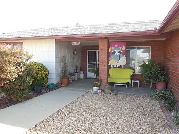 Wonderful Senior home, 2 large bedrooms, 2 baths and 2 car garage. Very open feeling as you enter home with wall to wall windows in living room, Dining room spacious for dining room table & hutch, walk into large kitchen with breakfast counter to seat 4-5 comfortable, newer stove, newer sink & faucets, adjoining family room with brick wood burning fireplace, sliding glass doors to huge sun room, Inside laundry room with cabinets and built-in clothes rack, 2 car garage with extra room for the carpenter or craft person. Both bedrooms have carpet master bedroom have mirrored double closet, master bath room has been upgraded with floor to near ceiling beautiful tille and new walk-in wall, quest bedroom has huge walk-in closet plus entry to hall bath.