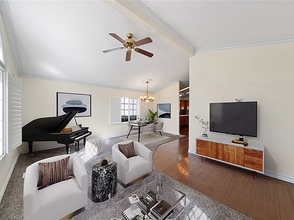Corner Lot Beautifully Upgraded Home in a Gated Active 55+ Community. Home has been upgraded with engineered wood flooring quarts countertops, decorative plantation shutters, fresh paint, newly installed bathroom vanities and more. This home is perfect for entertaining with an oversized patio with wood deck, decorative lighting and koi pond. Another great feature is that there is ample guest parking just off of the yard.