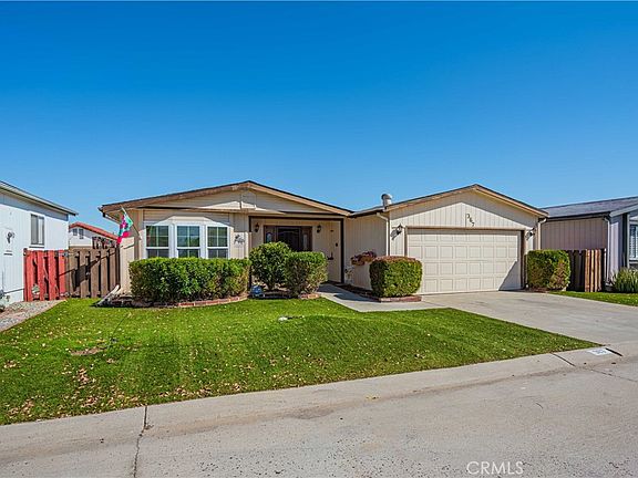 Welcome home to this extremely clean and well maintained 2-Bedroom, 2-Bathroom Golden West Triple-Wide manufactured home in the highly desirable 55+ Community of Sun Meadows. This beautiful home has been updated with newer sleek luxury vinyl plank flooring throughout. HVAC was replaced 2 years ago. Newer hot water heater. Wide open, spacious floorplan with some built-in features in the living room and vaulted ceilings. The living room opens to the kitchen and separates from the dining room. The step saving kitchen has plenty of cabinet space and solid surface Corian counter tops. A convenient indoor laundry room leads to the attached two car garage. This lot offers so much privacy in the backyard with a beautiful alumawood covered patio and mature trees and landscaping. The community offers a clubhouse, gym, pool, spa, sauna, tennis and pickleball courts, billiard and card room, shuffleboard and many more activities. Monthly income must be 3x the monthly space rent of $963.98 plus $225.00 average in utilities ($963.98 x 3 = $2891.94). This is a 55+ community, and buyer must be approved by the Sun Meadows Management.