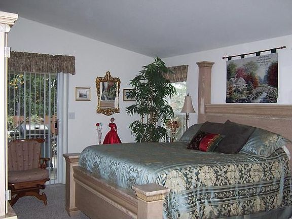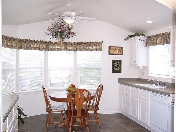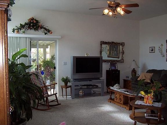 BRIGHT * CLEAN * TURNKEY ** Beautiful Open Floor Plan over 1700sqft. Built in 2004 has 3 Big Bedrooms 2 Baths, Berber Carpet flooring, White Cabinetry though out home, Vaulted Ceilings, 4 Sky Lights, Ceiling Fans, A/C & Heating, Big & Bright Kitchen Open nook eating Area decor space above cabinets. Large Master Bedrm 2 Closets 1 Walk-in Closet, Master Bath Big 2 door Shower dual sinks and lots of cabinetry. 2 Car Garage Roll Up Garage Door, remote control & window Lights Covered Patio Area, with sliding glass doors off Living Room and Master Bedroom, Front & Backyard Beautifully Landscaped plus Mature fruit Trees indoor Laundry room with lots of cabinetry. Community 55 years & older. Great location near main gate entrance & Club House with amenities of Pool, Spa, Horseshoes, Billiards & Tennis Courts, Sauna, Cards & Exercise Room, Crafts, Putting Green & more, Low Rent Space Plus Super low utilities. RV Parking Available