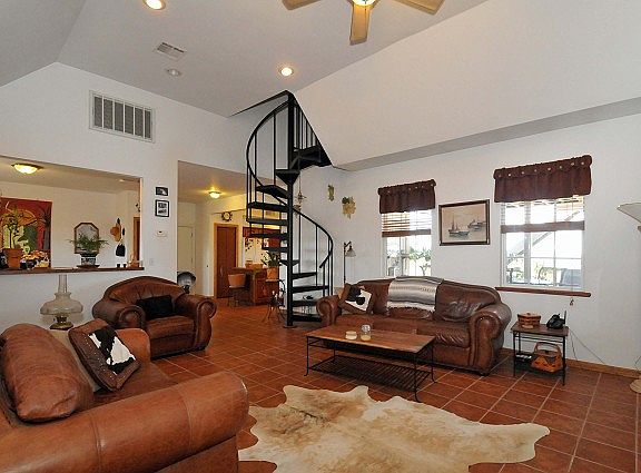 Light,Bright,Open Floor Plan! Lg Country kit w/island Attached oversized garage Huge shop with garage door entrance. Safe room , Large balcony/deck w countryside view. Great Room w high ceilings. Master Bedroom plus 2 additional bedrooms downstairs. (Bedrooms: 4, Full Baths: 3, Half Baths: 0)
