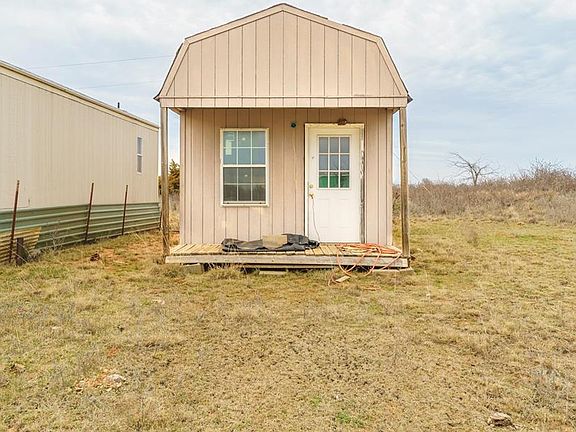 13.4 acres of serene countryside, this property offers a unique blend of rustic charm and potential for upgrades and/or a custom home. Includes a small pond, while the entire perimeter is securely fenced. The 16x80 single wide is being removed before closing. Storm shelter installed! includes an 8x8 shed and a 10x24 unfinished tiny home with a porch, offering potential for expansion or additional accommodation. Two 40' shipping containers provide ample space for storage or creative ventures. This property represents a number of possibilities for those seeking a rural retreat with room to customize and create their ideal living space among nature's beauty. water well on site, no septic