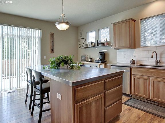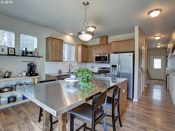 Fabulous 3 BR, 2.5 BA home in a quiet, close-in location. This home features a large kitchen w/ tasteful updates: SS appl., quartz, subway tile, cooktop w/ B/I convection microwave, expanded custom stainless steel island/dining area makes great use of space. High ceilings, wood laminate floors, cozy fireplace, large master BR, BA with walk-in closet. Good size bedrooms, A/C, extra parking, close-in to downtown and Pacific University.