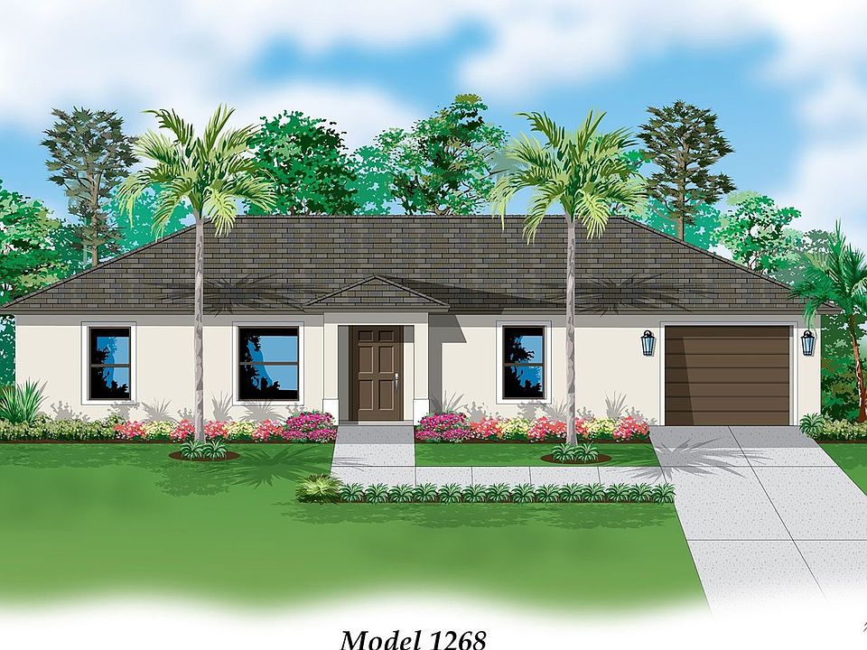 Welcome to your dream home in Lehigh Acres, FL! This BRAND NEW 3B/2B/1 CAR GARAGE is a gem in SW Lehigh Acres. The house boasts an eat-in kitchen with plenty of cabinets, a pantry, granite counters, and stainless steel appliances. The all-tile floors throughout the house add a touch of elegance and ease of maintenance. The split floorplan offers privacy and convenience, with the primary bedroom featuring an en-suite with dual vanities and a large tiled shower. The property is pet-friendly and move-in ready, perfect for creating new memories. The house is built on a large quarter acre corner lot, with a spacious backyard and a covered rear lanai, perfect for outdoor activities. The one-car garage is oversized, providing ample storage space and includes a washer and dryer hook-up. The house is equipped with storm protection-impact windows for added safety. Located close to downtown Lehigh and SR 82, and within proximity to all amenities in Lehigh Acres, this home offers a great location advantage. This gorgeous single-family home is one of the lowest-priced new constructions in the area. Don't miss this opportunity, SEE IT TODAY!