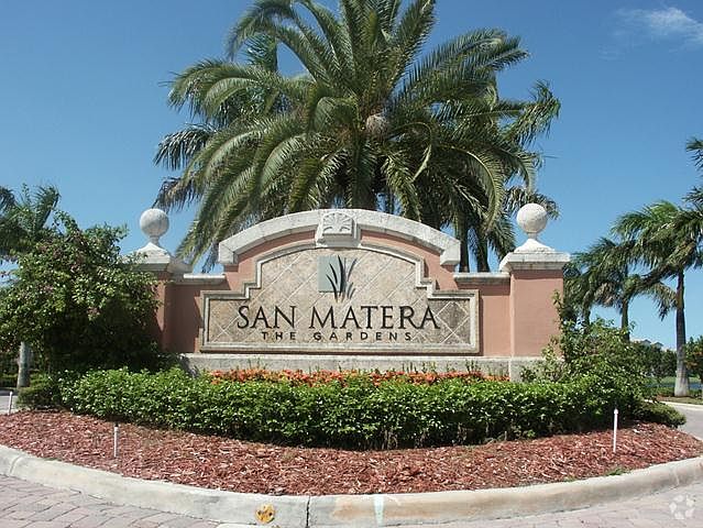 Welcome to the sought after Resort style community of San Matera in an unbeatable location! This spacious 1 bedroom,1 bathroom unit is carpet free, has stunning travertine floors, breakfast bar and separate dinette space, large walk-in closet in the primary bedroom. This unit is FRESHLY PAINTED, all stainless steel appliances with a large screened balcony, that can be enjoyed all year round. This unit is a MUST SEE! This is a gated community, loaded with amenities. A Club house, gym, tennis courts, grand swimming pool, hot tub, sauna and much more. Management office on site for convenience. Walking distance to the GARDENS MALL, close to restaurants, whole foods, Downtown PBG and Palm Beach State College. Rent includes water and sewer. This unit will not last!