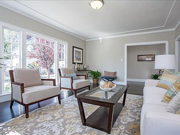 Located on a sunny corner lot, this three bedroom, one bath Mediterranean style home is quite charming with its rich dark stained wood floors and abundance of period trim and moldings. A bright and open living room with floor to ceiling front windows leads into a formal dining room with bay windows. The sunny kitchen features period cabinetry and delightful breakfast nook. The fenced backyard features a flagstone patio and various planting areas. Easy access to detached one car garage. Easy access to highway 580, shops and cafes in nearby Dimond District