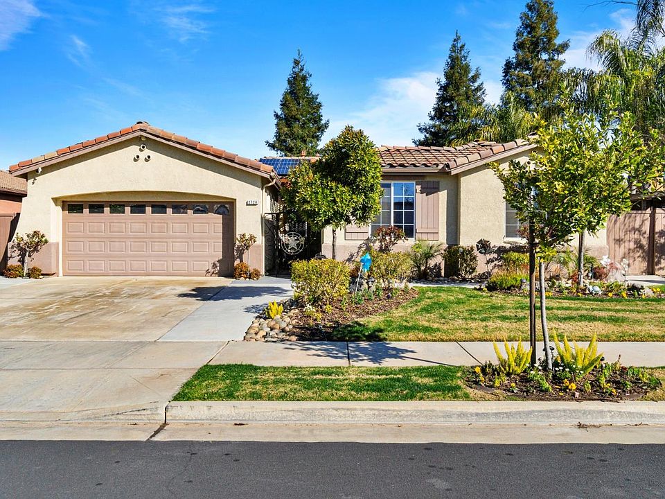 Owned Solar!!Welcome to the next chapter of your life with this beautiful model home. Custom, custom ,custom!!!This home floor plan has been remodeled like no other home in the community. Spacious family room exposed to your beautiful gourmet kitchen. High end tile flooring and custom interior colors throughout this unique home. It's 2,200 SqFt large and it features4 bed, 3.25 baths with high vaulted ceilings with leased solar. Prime location for Sanger and within walking distance to Sanger high. Call your local realtor today for a private showing.
