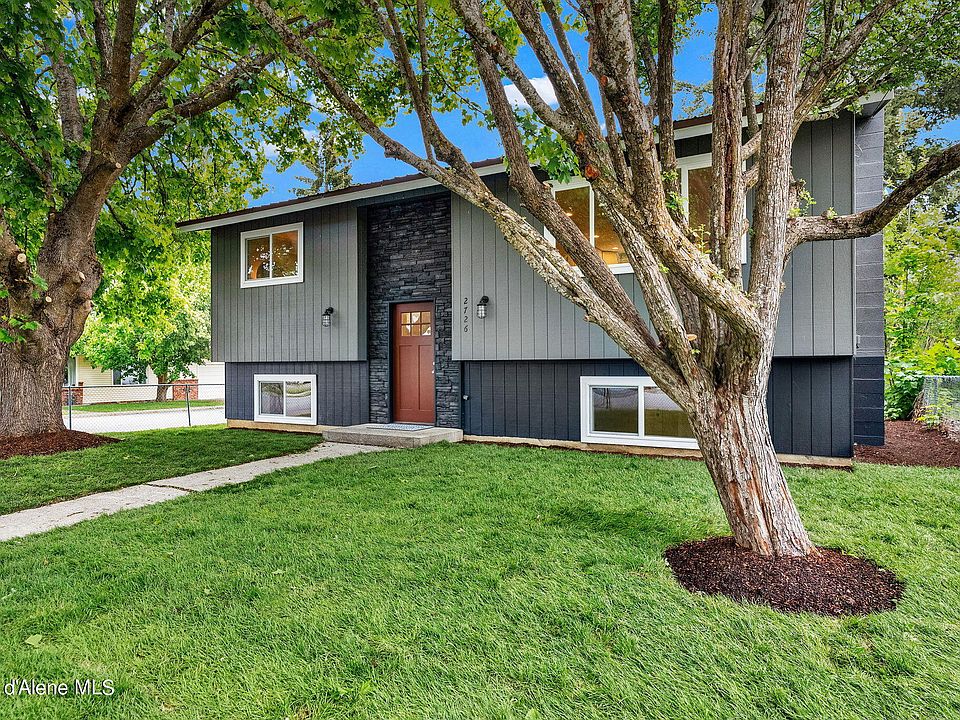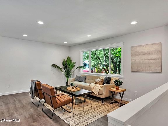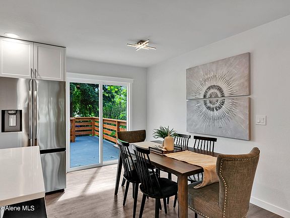 $5,000 Buyer Bonus for rate buydown or closing costs! Don't miss out on this completely remodeled gem, perfectly situated on a corner lot and centrally located Coeur d'Alene. This stunning 4-bedroom, 2-bath home boasts an open floor plan that effortlessly blends the dining and living areas with a chic, modern kitchen. The kitchen features top-of-the-line stainless steel appliances, elegant quartz countertops, and a sleek backsplash. Step through the sliding glass doors off the dining room to a brand-new deck, perfect for entertaining or enjoying those perfect Idaho summer nights. Inside, you'll find impeccable updates including new flooring, windows, cabinetry, and tiling throughout. The lower level offers a cozy second living space as well as convenient access to the backyard. The spacious laundry room provides ample storage space, and the expansive detached two-car garage offers plenty of room for vehicles and additional storage.