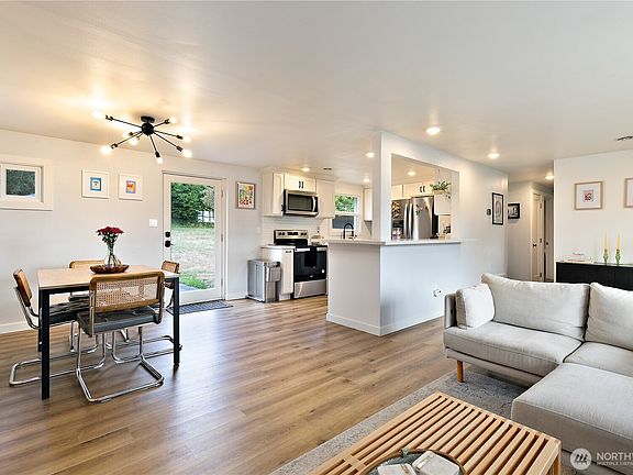 Nestled in desirable North Tacoma, this recently remodeled rambler blends comfort & style with fresh interior bedroom paint, new flooring, a designer kitchen, and a beautifully updated bathroom. The bright and airy open layout makes the most of its efficient 3 bed/1 bath, 1,100+ sq. ft. floor plan. Step outside to enjoy a brand-new custom patio with in-ground lighting, perfect for gatherings or quiet evenings, along with a spacious fully fenced yard featuring fruit trees and plenty of room to play or garden. Complete with recently added heat pump for heating and cooling, new water heater, and new sewer line installed in 2020. Just blocks from Downing Elementary, Kandle Park, Proctor District, Point Defiance, Point Ruston, & local markets.