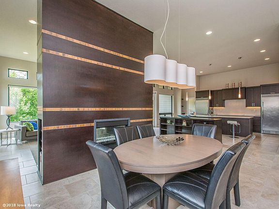 Fabulous custom Bussanmas built home with a convenient cul-de-sac location backing to a tree lined view Stunning 12' ceilings in the main living area, a double-sided fireplace and amazing windows with custom shades throughout. The kitchen features high-end lyptus cabinets, a butler's pantry with service sink and double wall ovens. Relax in your master bedroom and bath including a soaker tub, tiled shower, and custom closet system. In the walkout lower level enjoy the living room and large bar with generous cabinets and countertop space, two bedrooms and bathroom, additional laundry hookups, and large storage area. Outside, relax on your covered composite deck with an additional powered awning and mature landscaping with underground sprinkler system. Tour this impeccably built and well-maintained home today