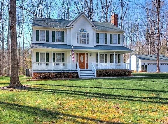REDUCED $10,000.00...Welcome to this Picturesque well maintained one owner, low maintenance home situated on 3.33 acres in High Grove on Rt.522, 2.4 miles from interstate I64 Gum Springs Exit.Enter in New Therma True Doors to a 11.2 x 13 foyer,13.3 x 17.5 living room with a rock fireplace. formal dining room with hardwood & chandelier.Fabulous kitchen granite and stainless appliances,double oven,breakfast nook leading out to your 14x14 screen porch on house foundation & 14x26 composite deck over looking a park setting back yard. 9.5 x 8.10 Utility room with washer & dryer. Hardwood stairs leading to second floor features a 11 x 8.5 sitting / office room. Elegant 13.3 x 18 Master bedroom with a full bath & walk in closet. 2 more bedrooms & full bath in hall way.2 New high proformance Train 18 sears AC 2017, Energy save Water Heater,385 Ft. Artesian Well,Whole house Water Filter,30 year Roof, Comcast high speed internet & cable.,AC & Alarm system ( control by phone )Generator ready equipped, Under house new installation, 28 x 22-2.5 car garage, Out building with electricity. Paved 800 ft. circular driveway. High Grove has 2 lakes , fishing,picnic pavilion with grill, tennis court.