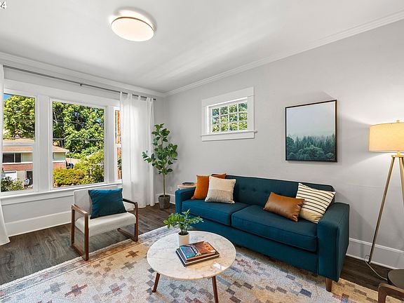 Nestled amongst the trees, this beautiful PNW bungalow is positively brimming with character and charm. An inviting entryway welcomes you into the large living area with a sizable front window which ushers in plentiful natural light. Enjoy a recently renovated gourmet kitchen with quartz counters, stainless steel appliances, and ample storage space. Tall ceilings throughout for an open feel in all of the bedrooms including the spacious primary which sports a roomy walk-in closet. Private, fully fenced backyard with a lovely deck that’s perfect for entertaining in the sunny summer months ahead. Double driveway + attached garage. Absolutely prime location, just steps away from SE Division and SE Clinton street shops and restaurants. Some of Portland’s best restaurants, bars, and dessert just outside your door! Bike down Clinton St greenway or walk your furry friend to numerous pup-friendly stores nearby. Also near to schools, parks, public transit, and so much more. Don’t miss this radiant Richmond abode! [Home Energy Score = 4. HES Report at https://rpt.greenbuildingregistry.com/hes/OR10033468]