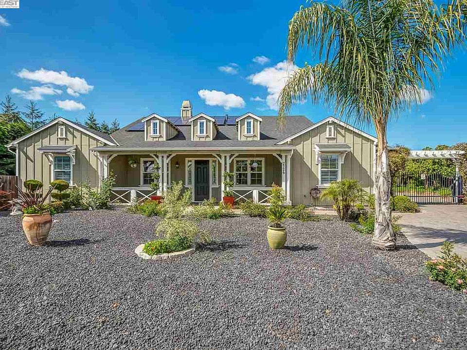 Gorgeous Vineyard Gate single story home on private lot. Upgraded tile floors through out most of the home, w/plush carpet in the formal living room & all bedrooms. Kitchen has granite counter tops, expansive center island & full backsplash, prof. grade appliances & built-in refrigerator. Other items include, breakfast nook, sink w/ pendant light,office with built-in tech center & sliding glass door for driveway access,wet bar w/under counter wine ref. The great room has a fireplace with white cast iron mantel, entertainment alcove & double set of french doors leading to the covered patio. Other items include, guest half bath, one bedroom w/attached bath in its own wing of the home & amazing views. Spacious master suite w/large windows & French doors for backyard patio access. Backyard has stamped concrete patio, solar (owned) heated pool & rock waterfall. There is one attached garage and detached two car garage. A 363 SF. guest suite boasts a kitchen, full bath & open living area.
