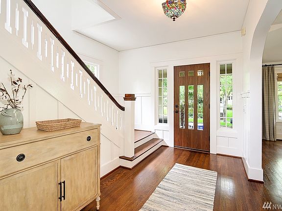 Stately 1914 craftsman home on idyllic street in Mt. Baker neighborhood balances old world charm with modern conveniences throughout. Large covered porch welcomes into the foyer and leads to formal rooms that flow effortlessly on main floor. Light fills the living, dining, kitchen, and sun room all day while showcasing the intricate millwork, original pocket doors, and wood floors. Open kitchen with new appliances + huge deck and backyard + built-ins throughout. Walk to amenities, lake and park!
