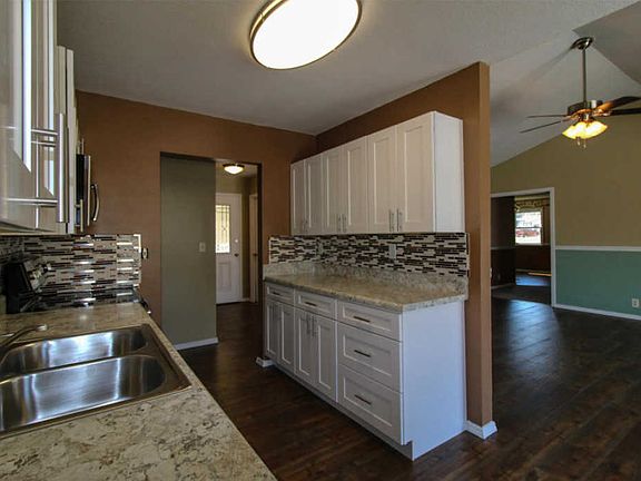 4 bed, 3 full bath home in a quiet, friendly neighborhood. This home has a really refreshing floor plan. On your showing, you'll fall in love with the vaulted ceilings, and new flooring. New cabinetry, appliances and more await in the clean, modern kitchen. Newer wood clad pella windows frame the beautiful large deck, and fenced lawn. 2 bedrooms have their own bathrooms. Large walk in closet. Large workshop with overhead door.