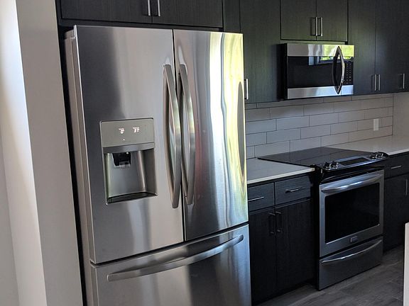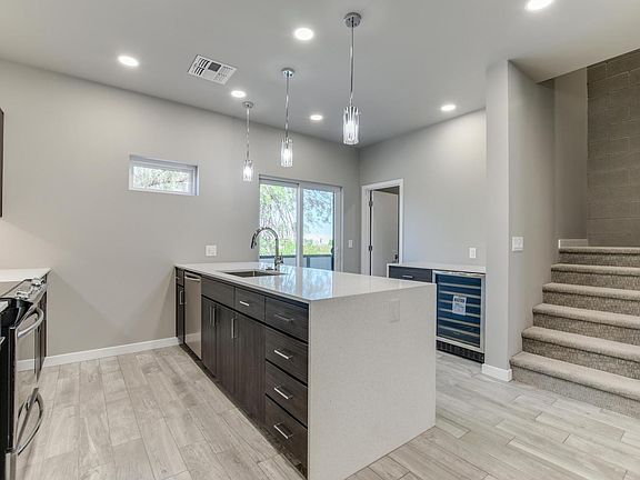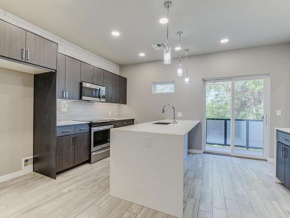NOT AVAILABLE UNTIL August 16th, tenant occupied- no same day showings. NEWER 3 BR + DEN townhome in private Gated community. GREAT LOCATION The construction quality is unparalleled in this price range. CMU masonry common wall, 2 x 6 construction , Tyvek and Synthetic Stucco Exteriors, Anderson Windows and Sliding Doors. All upgrades selected including Quartz waterfall Countertops, Kitchen backsplash, SS Appliances including wine fridge and bar, under counter lighting, tech center, ceiling fans, floating mirrors Wood look tile floors, LED lighting , High efficiency Trane AC ,Cell Phone & Tablet Charging Stations on Main Living Level and Master Closet, Prewired Recessed TV and fan and block enclosed yard as well as walkout balcony off living area, Amazing storage. Private 2 car garage with direct access to unit.