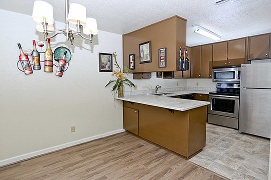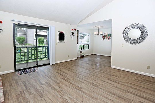 Upstairs end unit. Updated w/ vaulted ceilings + fire place. The kitchen includes a quartz counter top and newer appliances w/ W&D hookups. Both bathrooms have been remodeled. New Linoleum flooring throughout living area. Move in, relax and enjoy!