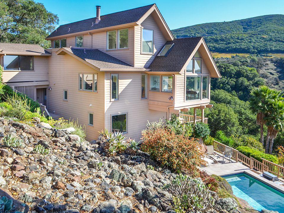 Gated estate unsurpassed views overlooking the Napa Valley, SF Bay & beyond. Extensively remodeled and updated throughout. 3 beds in main house plus den and loft. Detached newly constructed rec room with full bath, stain concrete floors...etc main residence sits atop a knoll on roughly 6.08 acres above Silverado Resort helicopter landing area on property. Only 2 miles to Atlas Peak rd just 13 miles to Napa Airport (KAPC) . . . yet a world away