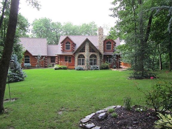 Tucked away in paradise sits this Breathtaking home on 12 mostly wooded acres with stocked ponds and a 40 x 80 heated shop w/ concrete floor, tall doors and a large graveled lot. You MUST SEE THIS PLACE!!! From the minute you drive up and see the magnificent waterfall and landscaping, you will be blown away!!! Log house w/ Soaring Ceilings, lots of windows, beautiful kitchen, full finished walkout basement, and on and on. You'll feel you're on vacation at your favorite lodge...EVERY DAY!!! Sit on the deck overlooking the waterfall, fish and swim in the pond, ride your 4 wheeler or horse thru the woods along the creek...sooooo much to do...and such a perfect place!!! You can even run you business out of the magnificent 40x80 shop! Just 10 min south of Effingham...yet you'll feel you're in another world!!!