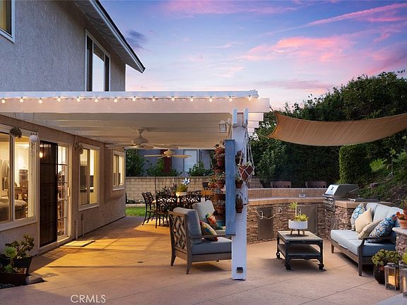 This is it. This is the house you have been looking for! It has every amenity and so much more. Perched atop the beautiful hills of Orange in the highly sought-after neighborhood of Vista Royale, this stunning 4 bedroom, 2.5 bathroom home is ready for a new owner to love it for years to come. As you drive through the community, you will fall in love with the family-friendly streets. Pull into your 3-car garage, which features epoxy flooring and custom cabinetry, and make your way through the front door. You will be welcomed by towering ceilings that make the home feel even larger than it already is. The formal living room is the perfect place to entertain guests or curl up with a good book on a quiet evening at home. With beautiful tile flooring throughout the first level and plantation shutters on the majority of windows, you will be in awe of how this home balances elegance with ease of maintenance. Moving into the formal dining room, you can easily envision your family gathered around the Thanksgiving table as light floods inside from open windows that look out to the lush backyard. The adjacent great room consists of a large family room, breakfast nook, and renovated kitchen with stainless steel appliances, including a built-in oven and microwave, gas stove, and refrigerator, as well as white cabinetry and black granite countertops. The family room centers around a warm fireplace and opens to the backyard through sliding glass doors, thus making it the perfect place to entertain. Your guests will envy your new backyard, which boasts a built-in barbecue area with a sink, storage, and stove, as well as multiple sitting areas, a ceiling fan, and a fire pit with built-in seating that doubles as a storage area. Back inside, a half bathroom and remodeled laundry room finish off the first floor. Upstairs, the large primary suite includes a large bedroom and a renovated bathroom with dual sinks, a walk-in shower with frameless glass, soaking tub, and privacy toilet door. Elsewhere upstairs, 3 accessory bedrooms, each of great size, and an updated hallway bathroom finish off the property and provide more than enough space for everyone. With attendance to award-winning California Distinguished schools and close proximity to amazing shopping, dining, and entertainment, this property truly leaves nothing to be desired!