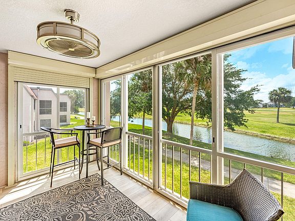 Discover Resort Style living in this tastefully updated 2nd-floor, 2/2 corner unit located within the vibrant 55+ active adult community of Sun 'N Green! Step inside to find LVP flooring throughout the living spaces, enhancing the spaciousness & elegance of this unit. The updated kitchen boasts newer cabinetry, SS appliances, tile backsplash & solid surface countertops. Both bathrooms have undergone full, stylish renovations. Newer impact windows w/sliders & electric roll-down hurricane shutters on screened balcony. Enjoy serene views of the lake overlooking the 16th hole of Mallard Landing Public Golf Course. Indulge in a wealth of amenities tailored for relaxing or active living. Take a dip in the pool, unwind in the sauna, or maintain your fitness in the workout room. Challenge your friends to a game of billiards, practice your putting skills on the green, enjoy a friendly match of shuffleboard. HOA Fee $555 monthly- water, cable/internet, trash, exterior insurance, amenities.