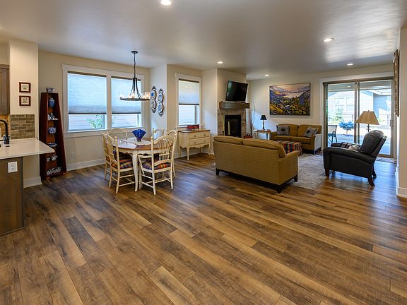 Highly upgraded and nicer than new single level home with an amazing great room layout that comes fully furnished. Dry Canyon is Redmond's premiere 55+ community with trails, quick dry canyon access, no through streets, and a community center that is forthcoming. Upon entry in the foyer, you are greeted by 9' ceilings, high end LVP throughout the living, halls and great room, a gas fireplace with hearth and two sliders that lead to the covered back porch. The kitchen has expansive quartz countertops, undermounts single bay sink, undercabinet lighting, extra built ins w/buffet and just past the kitchen there is an office/craft area. Inside the primary suite you are treated to a large bedroom w/room for a king bed & end tables, access to the deck, a well-organized & spacious walk in, & the bath has tiled floors, a tiled shower w/glass door, quartz counters, & an enclosed toilet. The garage has a work bench, and the home has central gas heat and AC.
