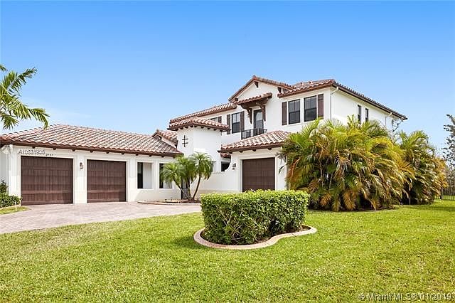 MONTERRA'S LARGEST MODEL LOCATED ON A CORNER WATERFRONT LOT! THE DELANO MODEL OFFERS 5 BEDROOMS AND 5.5 FULL BATHS WITH AN EXCEPTIONALLY LARGE MASTER SUITE IN ADDITION TO A FULL GUEST SUITE. ADDITIONAL FEATURES INCLUDE MARBLE FLOORS, WINE CHILLER, HIGHLY UPGRADED KITCHEN, HURRICANE IMPACT WINDOWS. THE OUTDOOR LIVING SPACE INCLUDES A SALTWATER HEATED POOL HIGHLIGHTED BY TRAVERTINE DECKING. GATED COMMUNITY ; RESORT STYLE AMENITIES ; TENNIS & BASKETBALL COURTS, FIT CENTER, TOT LOT & DOG PARK. A+ RATED SCHOOLS