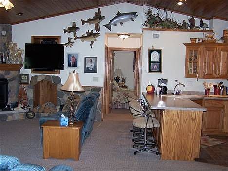 Newer 3 BR ranch home on Long Lake. Living room w/FP, kitchen w/custom cabs, MF laundry, master BR w/bath and walk-in closet. 2 car att. garage and well landscaped. Land to be surveyed by seller. The land/garage on west side of road not incl. in price-negotiable