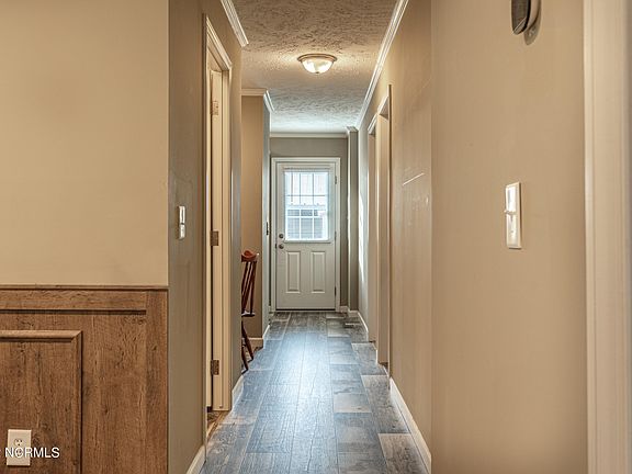 Arrive at this 3 bedroom, 2 bath home and experience the majestic covered front porch. Enter the home into the large living room with two large windows providing plenty of light. From the living room is an archway the leads you to the beautiful kitchen complete with center island and stainless steel appliances. Plenty of storage and a window over the sink so you can enjoy your backyard while working at the sink. A two-tone grey color scheme and wainscoting adorn the cute dining area with trey ceiling. From the dining room are sliding doors that lead to the Carolina Room with wall-to-wall windows. From the Carolina Room you can either go out onto the deck or on the other side of the room enter the 3-season room. All spaces allow you to enjoy the serenity of the backyard with plenty of trees for shade and watching the birds and squirrels play. To the left of the living room is the master bedroom, large walk-in closet and amazing modernized bathroom. The tile shower is huge! To the right of the dining room is the guest bathroom, which has access from the hallway and laundry room. There is a mud room with utility sink and lots of cabinets and a side door to enter or exit the home. Two nice sized guest bedrooms, one with built-in queen size Murphy Bed. Across from the bedrooms is a built-in desk area in the hallway that leads back into the dining area. The home offers a lot of natural light; blinds throughout; nice size rooms; beautiful kitchen, beautiful laminate flooring throughout. Large carport to the right of the home with extra storage and poured concrete to the back of it and a shed with loft to the left. Huge side yard to park your boats, RVs, etc. with no HOA. Just minutes from restaurants, shopping, golf courses and beaches, this charming home is waiting to be yours!