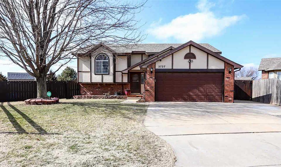 Welcome home to this well maintained split-level beauty in west Wichita! Right away you'll notice the homey feel and warm tones throughout. Upstairs you have two bedrooms and a full bathroom with dual vanity - check out the gorgeous tile shower and sky light. Basement also has two bedrooms and a full bathroom with an adept family room or rec room! Newer hail resistant roof! This property boasts newer fixtures, stainless steel appliances, irrigation well and sprinkler system, wood laminate flooring, GORGEOUS fireplace, and many more features to list. Did I forget to mention the walk out basement with covered porch wired for a hot tub? Lovely covered patio on upper level as well! Cul-de-sac lot with an incredibly attractive curb appeal. Extra large backyard and driveway with gate. Bring your boat! Don't wait to schedule your showing as this home will sell fast.