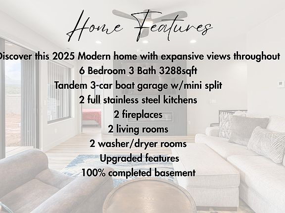 Come enjoy this Stunning new 3288 Sqft, 6 bedroom, 3-bath home in the sought after Trails at Shurtz Canyon community. Enjoy open-concept living spaces with large dual-paned windows that frame breathtaking Red Rock Mountain Views. This home boasts two full kitchens with stainless steel appliances, 2 fireplaces, quartz countertops, and automatic Norman blinds throughout. Designed for comfort and efficiency with a tankless water heater, soft water system, and mini split in the 3 car boat garage. Experience modern living with nature as your backdrop—just minutes from recreation, shopping, and dining. Quality finishes, thoughtful design, and unbeatable scenery make this home a true gem. Information deemed reliable, however buyer to verify all info.
