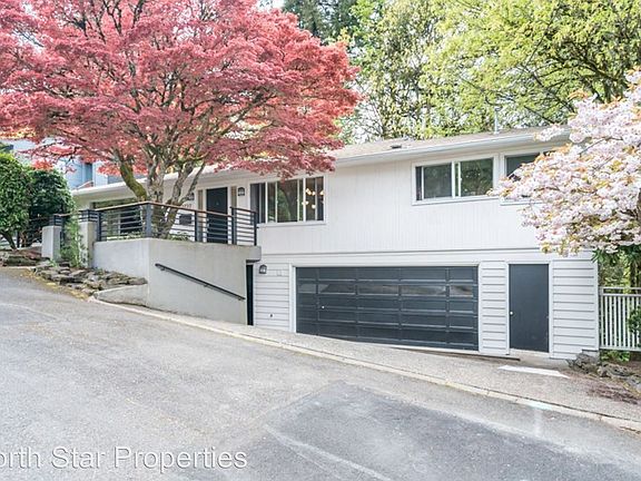 1961 Bauhaus Style in Portland's Southwest Hills - COVID-19 UPDATE: This home is occupied. For your safety and the safety of our tenants and staff, in-person showings will not be scheduled until the home is vacant. Virtual and/or video tours may be offered while the home is occupied. Come home to your personal urban oasis, nestled on a quiet dead end street in the peaceful and coveted Southwest Hills neighborhood. This 1961 updated modern masterpiece is perfectly positioned for both privacy and easy urban access, while perched on half an acre and backing an expansive forested parkland. Be welcomed by a zen inspired gated garden courtyard, wrapping around the home for outdoor entertaining and relaxing. The home opens into a spacious great room with a multitude of large windows, bathing both the living and kitchen areas with natural light. Gorgeous hardwood floors and crisp clean lines flow throughout the home, connecting the designated areas. The living room features a stunning concrete wood burning fireplace and large glass slider doors, opening to the side patio garden. The bright and brilliant kitchen lives especially fresh and organized featuring striking wood custom cabinetry, an over sized gas range, and the ultimate snug sitting area to enjoy your morning beverage with an unobstructed view of Mt St Helen. The main level features three bedrooms, including a stylish master with private en suite. All three bedrooms offer serene treetop views to the forest. The lower level features an impressive state of the art wine room and opens into two large designated spaces, offering versatility for a family room, media, office and/ or work out room and connects to a large entertaining deck with a covered Jacuzzi. There is a fourth bedroom conveniently positioned on the lower level, perfect for guests. No smoking and no pets please. Ainsworth Elementary, Sylvan Middle School, Lincoln High School This dwelling unit does not qualify as a 'Type A Unit' (accessible unit) per Oregon structural building code and ICC A117.1 No Pets Allowed (RLNE5734800)