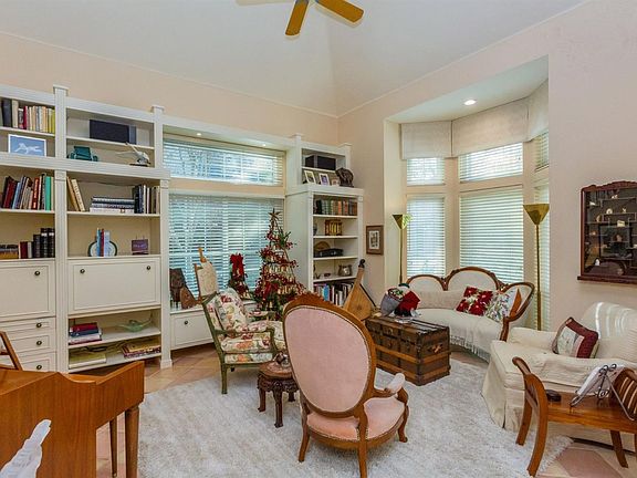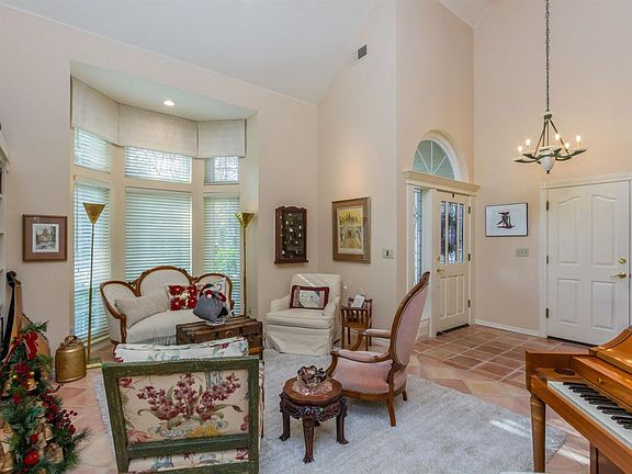 Enjoy the comfort and security of living in a gated community at Bluff View in the Royal Coach Estates. This well-appointed free standing home is on the market for the first time. The original owner chose one of the largest and best lots in the complex. The backyard is truly a private and relaxing paradise with mature trees and a soothing fountain. As you enter the home you are immediately impressed with the saltillo tile floors, warm color palette, plantation shutters, vaulted ceilings, and custom built-in cabinets. One bedroom and full bath down stairs and master and additional two bedrooms up. Master bedroom is over sized with a comfortable sitting area and a cozy fireplace. This home feels warm, comfortable and inviting. The complex features a clubhouse with kitchen, tennis courts, common area and pool. Newer roof and a whole house fan. Wine closet has insulation, but refrigeration has been removed. Bed/bath count differ from tax records. Buyer to verify if important.