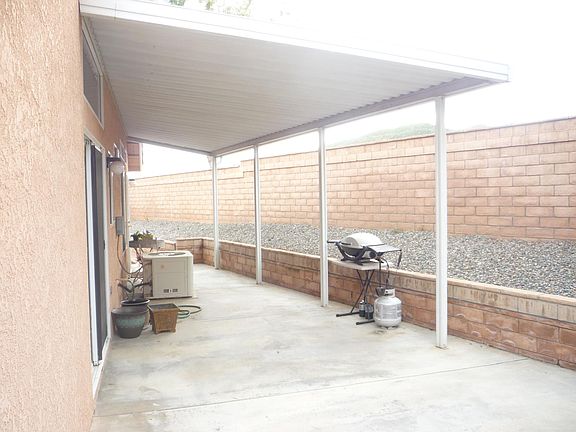Nice Senior home Tile Entry large Living and Dining room with Fireplace. Lge Kitchen w/ room for dining table. Stove, Dishwasher. Sliding door to large covered Patio and a grassy area on the side. Master Bedroom has separate toilet and shower, Walk-in Closet and a sliding door to covered patio. Additional bathroom to serve other two bedrooms. Two car garage with cabinets. Rancho Plaza Realty, Inc. www.ranchoplazarealty.com, 951-723-1333, Monday through Friday 9 am to 5:30 pm (closed for lunch 1-130 pm) and Saturdays 10 am 2 pm. Yard Service Included. Tenant pays all electric, water, gas and trash service. Owner pays HOA.