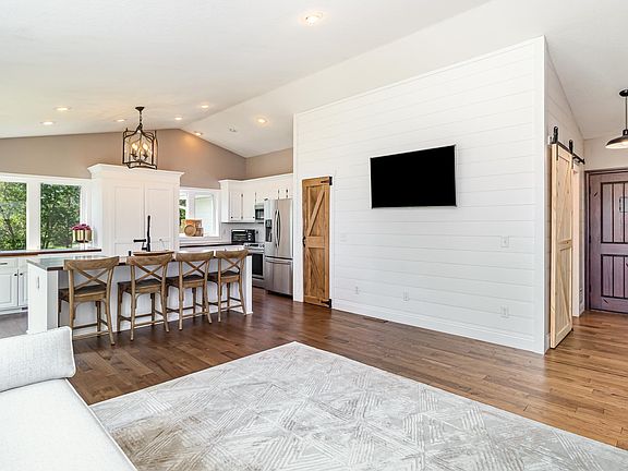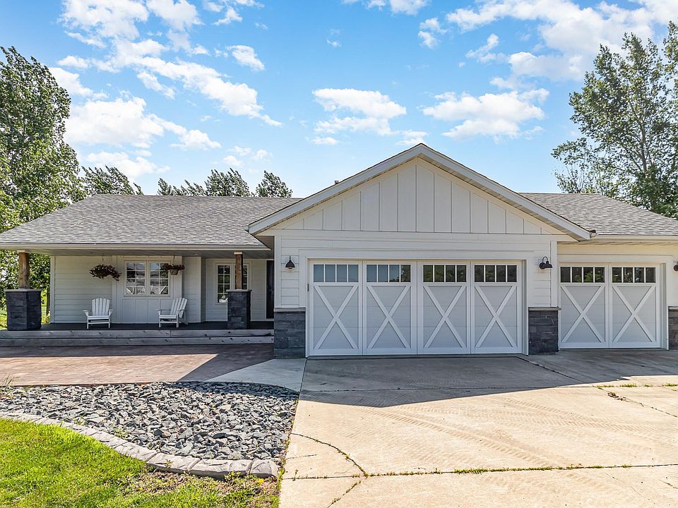 Single level living with so many features. Attracts the young & old. 2 of the bedrooms have its own private bath. Primary can be up or down. Laundry on main level & an additional on lower level. Lower level walkout for access to rear yard. Upper-level patio door offers future deck options. 3 car garage has stairs to LL mud room off garage, feature lots of additional white cabinets, built in lockers, laundry tub & additional area for laundry baskets under washer & dryer. Great room has huge island, tons of cabinets, stainless app, & farmhouse sink. Abundant outside spaces. Nicely landscaped. Beautiful private views out every window in this home. Cozy front porch, large concrete stamped patio in front, perfect place for your own personal firepit. Everyone's dream shop. Mechanic or hobbyist. Extra storage and parking options here. 40x64 insulated & heated, includes electric and water. 16 ft. tall sidewalls with 3 overhead doors. Two 12x12 doors and One 14x20 single door.