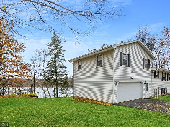 Two lots totaling 200' of south facing shoreline on Turtle lake. Located just 2 hours from the twin cities this 4-bedroom two bath lake home offers elbow room and privacy on a great lake with hard sand bottom! Wood fireplace, lake side porch, custom woodwork throughout, beautiful yard with attached and detached garage! Home has been updated including forced air furnace with central air conditioning, and maintenance free steel siding.